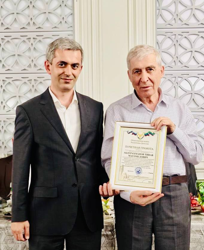 По поручению председателя и от лица Общественной палаты Республики Дагестан Азизбека Черкесова вручил Тинаву Магомедовичу почётную грамоту: «За значительный вклад в развитие медицины и клинической фармакологии, многолетнюю добросовестную работу, высокий профессионализм и в связи с 85-летним юбилеем. Выражаем глубокую благодарность за преданность профессии, научную и педагогическую деятельность, а также весомый вклад в подготовку кадров и развитие фармацевтической отрасли в Республике Дагестан.»